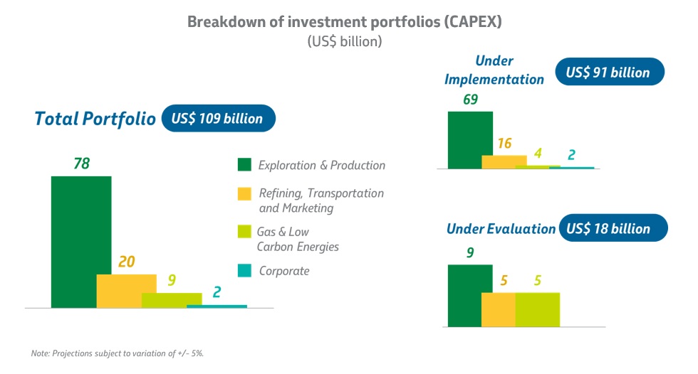 • “Implementation Target Portfolio”: US$ 91 billion, which, in addition to the projects in the Implementation Base Portfolio (US$ 81 billion), includes projects (US$ 10 billion) whose budget confirmation is subject to a financing analysis. Quarterly assessments, based on projections for cash flows and capital structure, will determine the progress of these projects, as well as any prioritization.