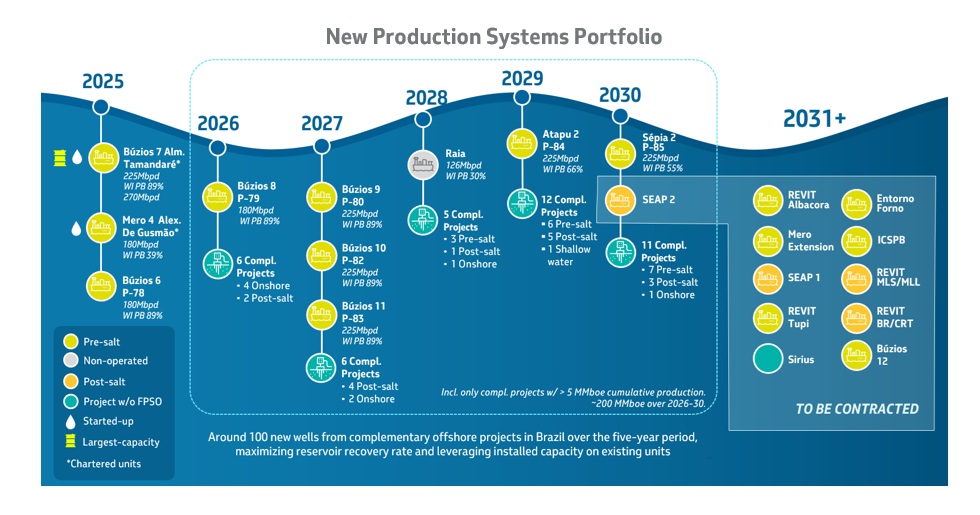 Eight new production systems will be implemented by 2030, seven of which are already contracted. Additionally, there are ten additional projects planned post-2030. Petrobras operates all these fields, except for Raia, operated by Equinor.