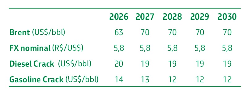 The average Brent price, exchange rate, and crack spread assumptions adopted for planning are outlined in the table below: