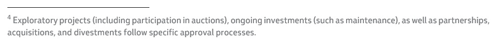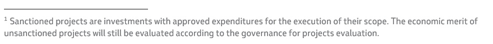 All capital investment projects are approved for the execution phase only when they present a positive NPV across all three Plan scenarios (4).