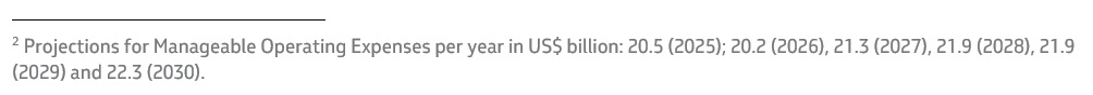 In addition to greater efficiency in Capex allocation, initiatives are planned to optimize costs, with estimated savings of US$ 12 billion in manageable operating expenses between 2025 and 2030 (2), representing an average annual reduction of 8.5% compared to the previous Plan. The initiatives include reducing spending on non-producing platforms, optimizing aerial and offshore logistics, optimizing well interventions and subsea inspections, taking advantage of backhaul freight, and postponing non-priority routine services and maintenance. The cost optimization actions are implemented in full alignment with total attention to people, respect for the environment, preservation of operational safety and asset reliability.