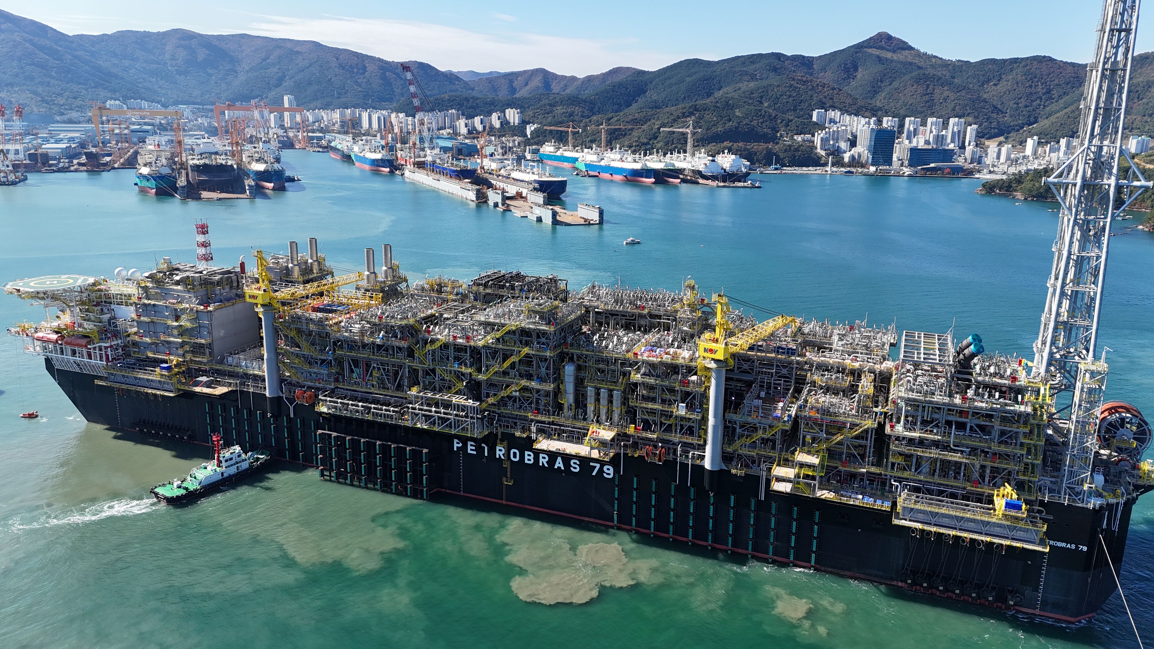 Download The P-79 floating production unit departs from the shipyard in South Korea, bound for the Búzios field in the pre-salt area of the Santos BasinThe P-79 floating production unit departed this morning, November 11 (local time), from the Hanwha Ocean shipyard in Geoje-Si, South Korea, bound for the Búzios field in the pre-salt area of the Santos Basin. The platform will be towed to its location with the crew on board, helping to speed up the start of production. Arrival is expected in February next year.